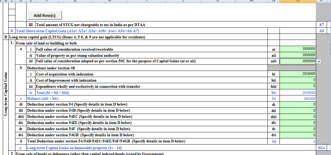 Please advice on the Cost of acquisition with indexation (ITR2 - LTCG)